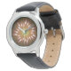 Uhr, Vintage Männeruhr mit schwarzem Lederarmband