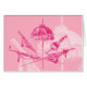 Diese T - Shirt und andere Gegenstände sind mit einer Vintagen Darstellung der Sonnenschirme in rosa Farbtönen bedruckt.
