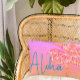Dieser klassische tropische Schatten eines Sonnenuntergangskissens auf der Insel ist ein Sommerprodukt. Fügen Sie eine bunte Palme und Aloha und es wird eine tropische Vision! Sie können den Text auf das ändern, was Sie gewollt haben. Eine atemberaubende Ergänzung zu Ihrem Wohnbereich im Freien. Ideal für Pool, Strand, Garten, wo Sie auch immer eine tropische Atmosphäre brauchen. Diese Kissen sind auch in Innengeweben sowie in Outdoor-Stoffen erhältlich.