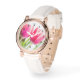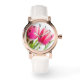 Rosa Tulips mit grünem Blätter Foto Armbanduhr