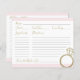 Rosa und goldene Glitzer-Rezeptur mit einfachem Skript und einem glamourösen Verlobung-Ring. Personalisieren Sie Ihre Veranstaltung durch Hinzufügen von Namen, Ereignissen oder anderen Details. Diese Rezeptionskarte ist perfekt für alle Brautpaare und Polterabend.