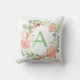 Pastellrosa und grüner blumenreicher Kranz um Ihren Anfang. Monogramm Schriftart Stil und Farbe, kann personalisiert sein, um Ihre Details. Die Farbe auf der Rückseite des Kissens kann geändert werden.