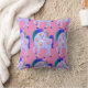 Ein niedliches rosa Kissen mit lila, sternenförmigen Einkernen, auf dem das Kissen aufgedruckt ist. Dieses niedliche Kissen ist ideal für Kinderzimmer.