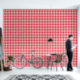 Ein kariertes, spielerisches, rosa und rotes Wandbild, das jedem Zimmer einen wunderbar kühnen Pop verleiht. Jeder Einzelne misst etwa 2". Originelle Kunst und Design von Annie Montgomery Design.