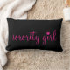 Vervollkommnen Sie für ein Schlafzimmer, oder Schlafsaalraum, dieses helle und nette Kissen kennzeichnet das Wörter Studentinnenverbindung-Mädchen auf einem festen schwarzen Hintergrund und ein Zickzack Schwarzweiss-Muster auf der Rückseite.
