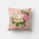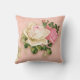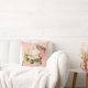 Kissen mit Blumenstrauß mit weißer und rosa Blume. Der Hintergrund ist rosa mit einem Blumenmuster. Hübsches und elegantes Design.
