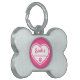 Niedliches rosa-weißes Herzdesign mit einem kleinen rosa Pfotenprint am Boden. Es gibt auch anpassbare Textbereiche für den Namen Ihres Haustieres und für Ihre Telefonnummer.