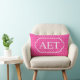 Vervollkommnen Sie für ein Schlafzimmer, oder Schlafsaalraum, dieses helle und nette Kissen kennzeichnet einen weißen Rahmen um Ihre Wahl der griechischen Buchstaben auf einem rosa und weißen Tupfenhintergrund.