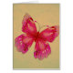 Design eines zarten rosafarbenen Schmetterlings, künstlerisch gezeichnet mit Inspirationen aus asiatischen oder orientalischen Stilrichtungen. Dieses Design ist Set vor einem blassgelben Hintergrund und hat ein Vintages oder Retro-Gefühl.