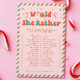 Fügen Sie Ihrem santa Baby Dusche Thema Spaß mit der rosa Weihnachtsdusche würde sie eher Spiel! Ideal für Weihnachten-Babydusche-Ideen, dieses Spiel bringt Urlaubsfreude in Ihre Weihnachtsdusche. Ideal für Babyduschen im Dezember, ist es eine festliche Touch für Ihre Feier. Entdecken Sie einzigartige Weihnachtsthemen und machen Sie den Tag mit diesen aufregenden Weihnachtsduschideen unvergesslich!