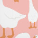 Gänse Wallpaper mit vielen weißen Gänsen in verschiedenen Posen vor einem rosa Hintergrund. Diese Tapete ist eine wirklich süße Akzentwand im Kinderzimmer Ihrer kleinen Tochter.