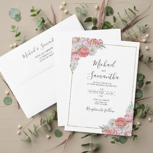 Rosa-weiße Peony-Hochzeit Einladung