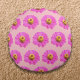 Nahtloses Muster der Zinnia-Blume mit rosa Rochen und gelben Scheiben auf Rundkissen bedruckt. Blumenkissen für Liebhaber von Blume und die Schönheit der Natur auf Ihrem Stuhl, Sofa, in Ihrem Schlafzimmer oder Wohnzimmer hinzufügen. Sie können es auch als Geschenk geben.
