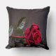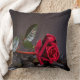 Eine wunderschöne rote Rose, die auf Felsen auf diesem wunderschönen, quadratischen Kissen liegt.