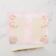 Hellrosa Rose und winzige, rosa Blume mit hellbeige Schreibfläche, rechts mit goldenen Linien gesäumt. Rosa Aquarelluntergrund auf beiden Seiten. Weiße Linien auf der Rückseite links. Hat Vintagen, Country-schicken Stil.