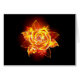 Blühende Rose aus Feuer und Flamme auf schwarzem Hintergrund.