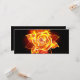 Blühende Rose aus Feuer und Flamme auf schwarzem Hintergrund.