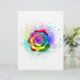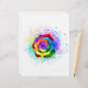 Große, blühende Rose mit Regenbogenblüten auf weißem Hintergrund, überstrichen mit farbenfrohen, hellen Farbtupfern. 3d