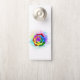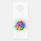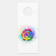 Große, blühende Rose mit Regenbogenblüten auf weißem Hintergrund, überstrichen mit farbenfrohen, hellen Farbtupfern. 3d