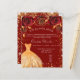 Eine moderne, stilvolle und glamouröse Einladung zu einer Quinceañera, 15. Geburtstagsfeier. Ein roter Hintergrund mit Imitaten goldener Glitzer Staub, ein Kleid und rote Rosen, Blumensträuße. Der Name ist mit einem modernen handgeschriebenen Stilskript geschrieben. Personalisieren Sie Ihre Party-Daten und fügen Sie sie hinzu. 1 Blatt = 1 Einladung mit Druckkante bis Kante.