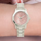 Dieses schicke Uhrendesign mit hübschem vergoldetem Glitzer aus Rose auf einer Rose mit goldgebürstetem metallischem Hintergrund ist einfach zu personalisieren.
