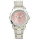 Dieses schicke Uhrendesign mit hübschem silberglänzenden Glitzer auf einer Rose mit goldgebürstetem metallischem Hintergrund ist einfach zu personalisieren.