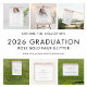 Budget Rose Gold Glitter Borders 2024 Graduation Einladung. Eine preisgünstige SMALLER 4.5" x 5.6" Alternative. Erhältlich in einem SEMI GLOSS 110lb CARD STOCK oder einem SATIN FINISH 80lb THINNER PAPIERSTOCK. An beiden Seiten befinden sich die Glitzer-Ränder der eleganten Rose Gold Imitate. Abschluss ist Set in einem modernen, handgeschriebenen Stil. Personalisieren Sie einfach die Erholung des Textes auf Ihren eigenen.