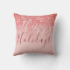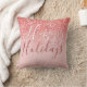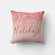Dieses Weihnachtskissen zeigt ein modernes Imitat Rose Gold Glitzer Korallendesign mit "Happy Holidays" Schrift Typografie. Beide Seiten des Kissens haben das gleiche Design.