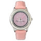 Kinderuhr aus Edelstahl mit rosa Lederarmband