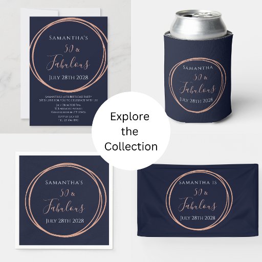 Rose Gold Navy 50. Geburtstagsparty Einladung