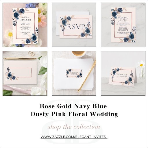 Rose Gold Navy Blue Dusty Rosa Blumendetails Begleitkarte