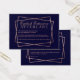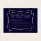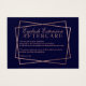 Moderne Imitate Rose goldenskriptgeometrisch marineblaue Wimpernverlängerung Nachbetreuung mit Wirbel Typografie und eine minimale Imitat Rose goldstripe geometrischen Rahmen auf elegante moderne Marine Blau.