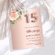 Eine moderne, stilvolle und glamouröse Einladung für eine Quinceañera. Eine Rose goldener Farbverlauf mit einer Rose goldgelb und rot rosa Blüte. Der Name ist mit einer modernen dunklen Rose goldfarbenen Handschrift geschrieben, die als Stilschrift dient. Personalisieren Sie Ihre Party-Daten und fügen Sie sie hinzu. Nummer 15 wird mit einem Schriftart im Ballonstil geschrieben, Skript. 1 Blatt = 1 Einladung mit Druckkante bis Kante.