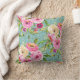 Dieses Kopfkissen mit Glasaqua-Glitzer-Kulisse für diese feminine Rose Blumendruck in Rosa, Pfirsich und Creme.
