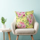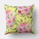 Die Rose sind in Rosa, Rot, Pfirsich und Creme gehalten und auf einem lemongelben Hintergrund auf dem Kissen des weiblichen Wurfs blühen ütige Aquarellfarben.