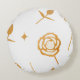 Rose mit weißem und goldfarbenem Plättchen Rundes Kissen