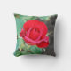 Die lebendige rote Rose schmückt ein bequemes Kissen. Schöner Blumenstil für Zuhause oder Bürodekoration.