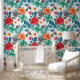 Rose Rotes Orange Grün und Blau Blätter Tapete