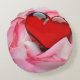 Liebliche und romantische Illustration mit einem roten Glasherz auf einem Bett mit weißen rosa Rosenblättern.