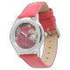 Uhr, Kinderuhr aus Edelstahl mit rosa Lederarmband