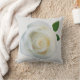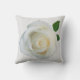 Eine nahe, weiße Rose, die die Pop auf einem quadratischen Kissen mit Dekorationselementen verziert. Für Zuhause oder Garten - kann mit Namen oder Lieblings-Sprichwort personalisiert werden.
