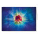 Rote Rose mit hellen Strahlen über blauem abstraktem Hintergrund. Durch Daniel B. Holeman.