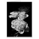 Blühende Rose auf schwarzem Hintergrund verblassen in Dunkelheit. Schwarzweißfotografie.