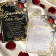 This elegant floral and gold leaves Quinceanera program is ready to personalize with your order of events, special thanks and any other information you wish to add. The design features bouquet of red roses on an elegant pearl white background embellished with a frame of gold leaves. Designed to coordinate with the "Floral & Gold Leaves - Black & Pearl" Quinceanera Collection. To change details, click «Personalize». To move the text or change the text size, font, or color click «Click to customize further»