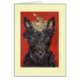 schottischer Terrier mit Verschachtelungsbaby-Kardinalshut auf Karte, damit Sie ohne Nebenkosten das Innere besonders anfertigen.
