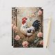 Ein wunderschön detailliertes Ölgemälde mit einem stolzen, schwarzweiß gesprenkelten Hahn, der inmitten von sanften rosa Rosen und rustikal schmiedeeisernen Zäunen stehend ist. Die reich strukturierten Pinselstriche und die Vintage Gartenlandschaft verleihen dem Haus einen zeitlosen Landzauber. Das Kunstwerk eignet sich perfekt für Bauerndekorationen, Küchenakzente oder rustikale Blumenthemen.