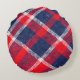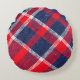 Rot-blau karierte Wolle Textur. Rundes Kissen