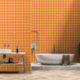Rot Gelb Karo abstraktes Muster Tapete