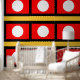 Rot-Gelb-Polka-Pegel und TASCHEN-Tapete Tapete