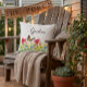 Mit diesem hübschen, blumengeschmückten Kissen können Sie die Gestaltung Ihres Wohnraumes im Freien genießen. Dieses wettergeschützte Kissen im Freien zeigt eine Abbildung von roten Mohnchen, schwarzen mit Augen Susans und blauen Bachelor-Knopfdruck-Blume. Es gibt auch Grünpflanzen und einen Schmetterling. Die farbenfrohen Blume sind auf einem cremefarbenen, weißen Hintergrund dargestellt. Personalisieren Sie den Text auf diesem Kissen mit Ihren eigenen Worten oder kaufen Sie, wie mit "garden" in einem Script-Schriftart gezeigt.